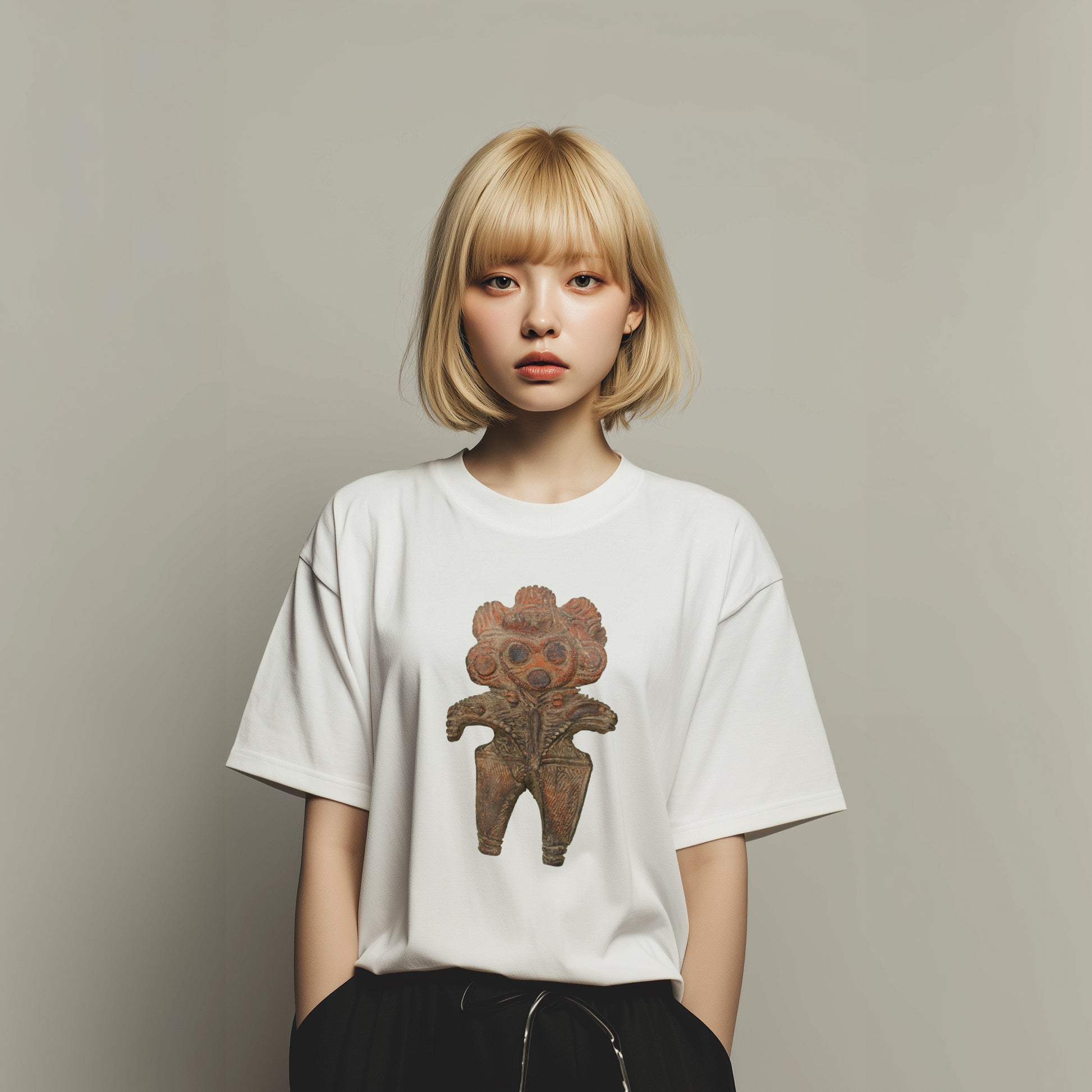 This clay figurine was made during the late Jomon period, around 2000 to 1000 BC. Excavated in Saitama City, it is notable for its facial features, which resemble an owl. The protrusions on the head are thought to represent tied-up hair or perhaps a comb, while the circular markings on the ears may have served as decoration.